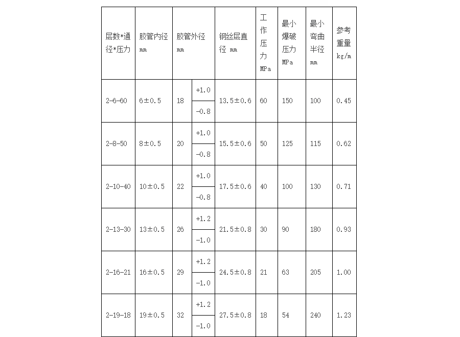 一、鋼絲編織膠管結(jié)構(gòu)是由耐液體的合成橡膠內(nèi)膠層、中膠層、Ⅰ或Ⅱ或Ⅲ層鋼絲編織增強層、及耐天候性能優(yōu)良的合成橡膠外膠層組成。