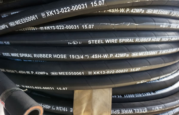 種類:4SP型—四層鋼絲纏繞的中壓膠管